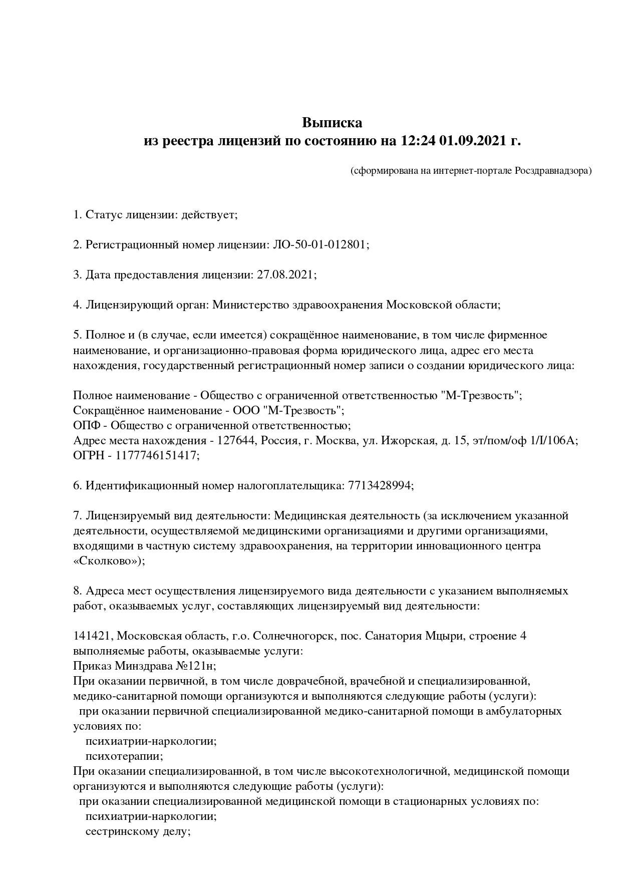Медицинская лицензия с 1996 года